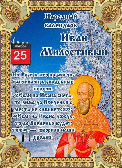 25 ноября православная церковь чтит память Иоанна Милостивого, патриарха Александрийского, которого в народе называли Иван Снежный.