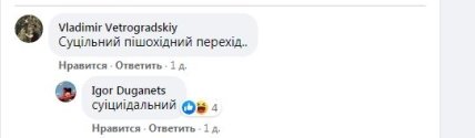 Комментарии не заставили себя ждать: «Придурошные», «Да еще и с детьми», «Самоубийцы», «Трещатик», «Суицидальный пешеходный переход».