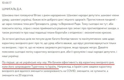 Более того, сам Шмыгаль во время выступления в Раде 17 ноября сам заявлял, что карантин выходного дня - это не украинское ноу-хау. Об этом свидетельствует стенограмма его выступления.