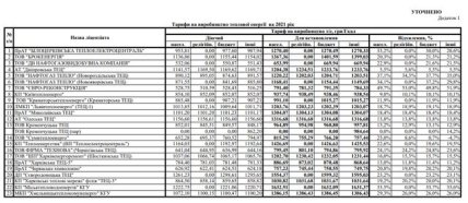 Стоит отметить, что НКРЭКУ устанавливает тарифы на производство тепловой энергии для 26 лицензиатов с объемом выработки более 170 тыс Гкал и уровнем коммерческого учета энергии более 90%, которые производят 50% тепловой энергии в Украине.