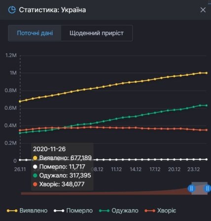 Стоит отметить, что на сегодня в Украине болеет около 348 тысяч человек, в то время, как в последний месяц это число не опускалось ниже 360-380 тысяч пациентов.