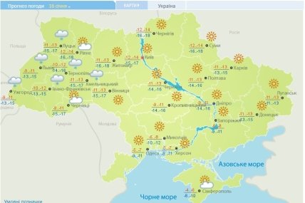 В субботу, 16 января, на фоне морозов, которые в Украине продержаться до 20 января, также будет морозно, но солнечно, местами со снегом.