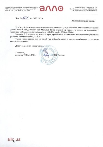 Также известный одесский активист Сергей Стерненко сообщил, что сеть "Алло" прекратила сотрудничество с Онацкой из-за скандала.