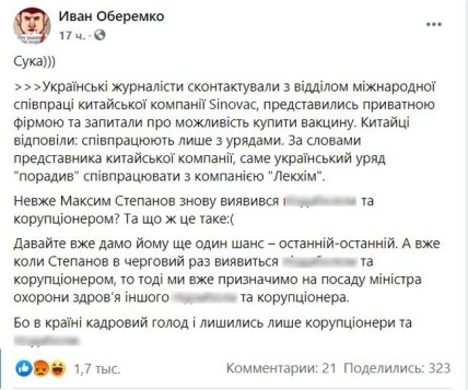 Активист, общественный деятель и блогер Иван Оберемко прокомментировал расследование журналистов Chas News и предположил, что глава МОЗ в очередной раз оказался коррупционером.