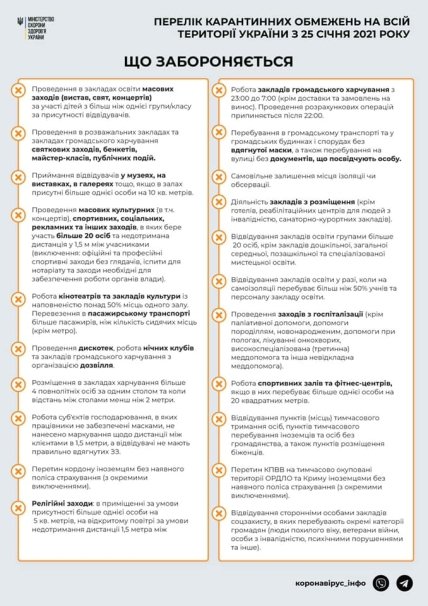 Украина в 00:00 25 января вышла из режима усиленного карантина или "локдауна".