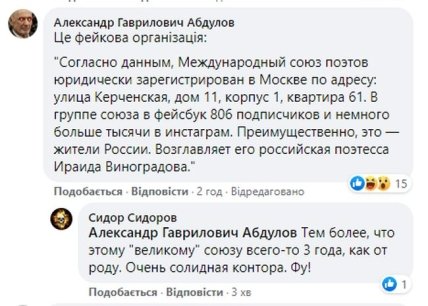 Преподаватель философии и культурологии Национального педуниверситета имени Михаила Драгоманова Евгения Бильченко, которая назвала Украину "онкобольной американской колонией", стала членом "Международного союза поэтов" в России.