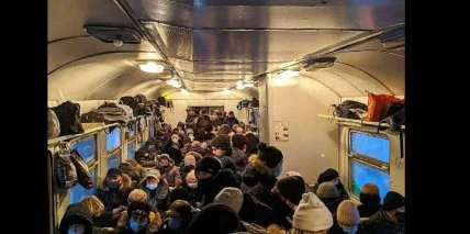 Несмотря на пандемию коронавируса в Украине, где на утро субботы, 13 февраля, обнаружили более пяти тысяч новых случаев, в электричке "Киев – Нежин" наблюдается массовое столпотворение пассажиров.