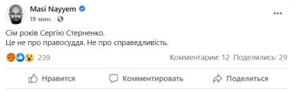 Одним из первых отреагировал известный адвокат Маси Найем, который заявил, что в решении суда нет места справедливости.