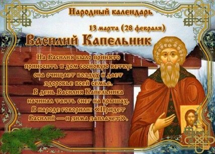 13 марта отмечают День преподобного Василия, который в народе стал больше известен, как Василий Капельник. По приметам дня судили об урожае.