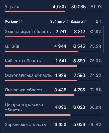 В лидерах же по занятости коечного фонда Хмельницкая область, Киев и область, Николаевщина и Львовщина.