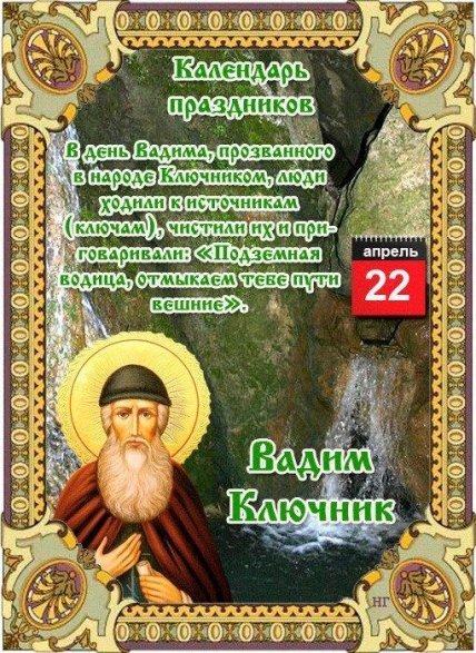 22 апреля в православии почитают преподобномученика Вадима. А в народном календаре дата получила название Вадим ключник.