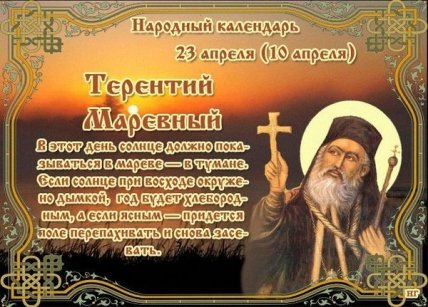 23 апреля отмечается народный праздник Терентий Маревный. По приметам этого дня судили об урожайности хлеба.