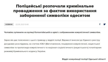 14:03 Первое задержание в Одессе - на Колонтаевской задержали мужчину с коммунистической символикой.