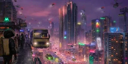 Маршрутки те же, но летающие: художник виртуозно изобразил, каким видит Киев в 2077 году (фото)