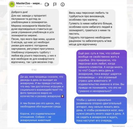 Отметилось в комментариях и руководство сети зоомаркетов MasterZoo, уверяя, что "Сеть очень ответственно относится к условиям содержания любимцев во всех магазинах.