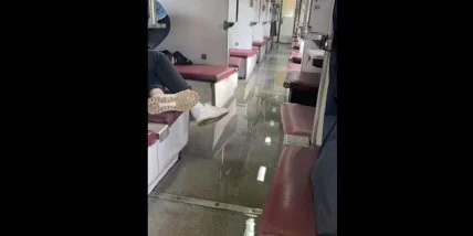 Напомним, в воскресенье, 16 мая, в третьем вагоне поезда прорвало трубу, и вода затапливала вагон, а пассажиры вынуждены были забраться с ногами на свои места.