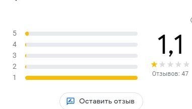 Примечательно, что в настоящий момент рейтинг компании в Google опустился до 1,1 балла.