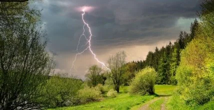 - Помните: чем выше дерево, тем велик риск, что в него попадет молния. Особенно опасно одинокое дерево, столп.