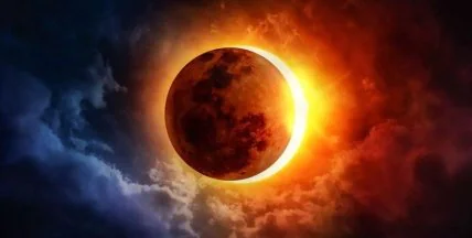 Кольцевое солнечное затмение происходит так же, как и полное, однако из-за того, что Луна при этом находится на большом расстоянии от Земли, что не позволяет ей полностью закрыть собой Солнце, от чего вокруг земного спутника образовывается "огненное кольцо".