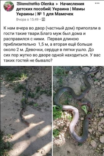 Ежегодно в конце весны-начале лета в СМИ появляется информация о том, что в разных регионах Украины на территории населенных пунктов и даже в частных дворах граждане обнаруживают змей, которых приходится отлавливать сотрудникам Госслужбы по чрезвычайным ситуациям. А во время "маёвок" – праздничных вылазок на природу и дачных работ порой происходят ЧП, когда гадюки кусают невнимательных или любознательных детей и взрослых. Также часто в соцсети встречаются сообщения о том, что испугавшись, люди убивают рептилий. И еще больше постов о том, что под колесами машин гибнут тысячи пресмыкающихся...