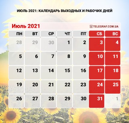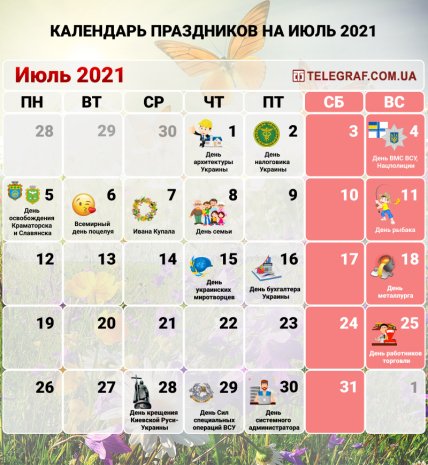 Июль 2021 года не порадует украинцев дополнительными выходными, но праздников в этом месяце достаточно.