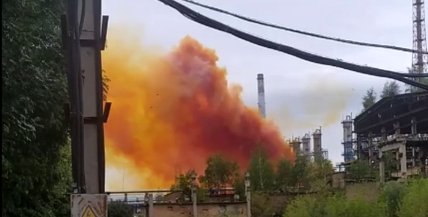 По данным МВД, на предприятии произошла разгерметизация емкости с азотной кислотой. ЧП устранено, жертв и пострадавших нет.