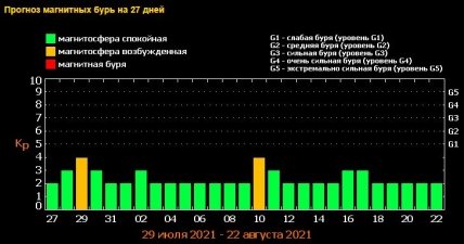 Незначительные магнитные колебания прогнозируются с начала августа.