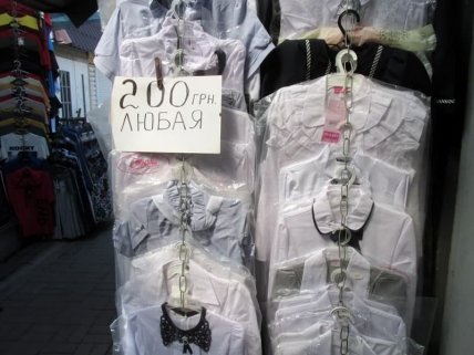 Конечно, в разных регионах Украины цены на детскую одежду могут несколько разниться. Знакомая сообщила, что на рынке Новоград-Волынского на Житомищине вышиванку можно купить за 280 грн, юбку за 180-310, белую блузку за 200-375, брючки за 250-290, пиджачок за 240-375 грн.