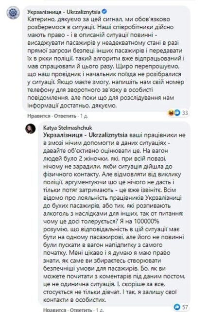 Безусловно, отреагировали на пост Екатерины и в Укрзализныце. Поблагодарили за сигнал и пообещали разобраться детально в действиях поездной бригады.