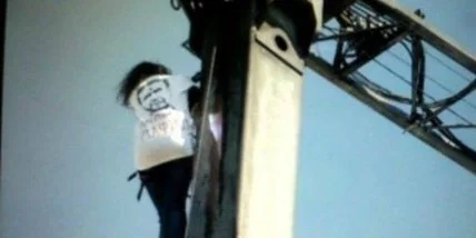 Татьяна Черновол, Игорь Луценко и Мария Лебедева взобрались на кран во время акции.