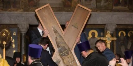 По его словам, из греческого города Патры, где был распят апостол Андрей Первозванный, крест вывозился впервые. В Украине трехметровая реликвия весом в 160 кг была доставлена на специальном бронированном поезде в сопровождении главы РПЦ патриарха Кирилла и делегации из 15 поместных церквей. В Минске реликвия пробудет до 2 августа, а затем снова вернется в родной собор на острове Пелопоннес.