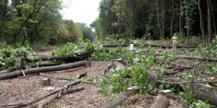 На территории Киевского лесничества КП "Святошинское лесопарковое хозяйство" уничтожено около 100 деревьев ценных лесных пород.