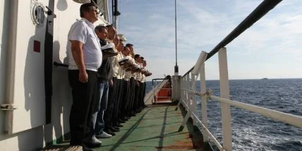 Церемонию прощания с погибшими моряками провели с участием представителей штаба аварийно-спасательной службы, а также руководителей экспедиции.