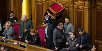 За 10 минут до начала пленарного заседания ВР народные депутаты из оппозиционных фракций блокируют трибуну и президиум парламент.