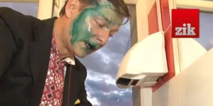 «А что вы здесь делаете?» - спросил Ляшко. В ответ он ничего не услышал, однако уже буквально перед самым входом в здание парни подбежали и облили Ляшко зеленкой. Потом быстро побежали в толпу.