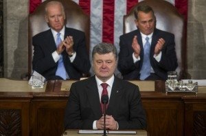 Порошенко в своей продолжительной (42 минуты) речи в американском Конгрессе заявил, что война в Украине – это глобальная борьба за демократию и свободу. Конгрессмены 10 раз вставали во время выступления Порошенко и 34 раза аплодировали ему и всему украинскому народу.