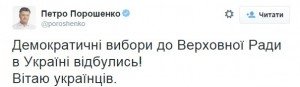 "Демократические выборы в Верховную Раду в Украине состоялись! Поздравляю украинцев", - заявил он.