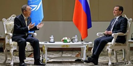 Сегодня Генеральный секретарь ООН Пан Ги Мун обсудил с премьер-министром Российской Федерации Дмитрием Медведевым ситуацию в Украине во время встречи на полях саммита стран Восточной Азии, передает УНН со ссылкой на сайт офиса ООН в Женеве.