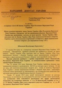 "Подали вместе Юрием Левченко, Дмитрием Добродомовым, Мустафой Найемом и Светланой Залищук обращение к Гройсману о недопустимости подписания закона о СНБОУ как такого, который принят с нарушением Регламента. И постановление об отмене", - написал С.Лещенко.