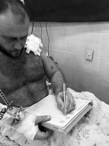 "Левой, невредимой рукой", - написал он и опубликовал фото Яроша.