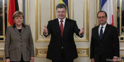 Как сообщалось, президент Украины Петр Порошенко в четверг вечером провел встречу с президентом Французской Республики Франсуа Олландом и федеральным канцлером ФРГ Ангелой Меркель, которые прибыли в Киев для обсуждения путей мирного урегулирования ситуации на Донбассе.