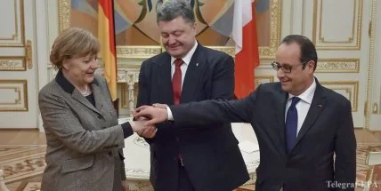 Пресс-служба президента Украины сообщила, что переговоры Порошенко, Меркель и Олланда продолжались 5 часов, и во время них они разработали совместные предложения для воплощения Минских договоренностей.
