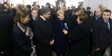 На приложенной фотографии видно, что П.Порошенко прибыл с супругой Мариной.