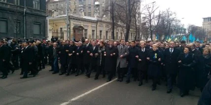 Напомним, для чествования памяти героев, которые год назад боролись за достойное европейское будущее Украины, в Киев прибыли главы государств и правительств, представители многих стран.