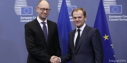 "Я завтра буду в Брюсселе встречаться с Президентом Европейского Совета господином Туском, премьерами ряда стран-членов Европейского Союза именно накануне Совета Европейского Союза и донесу позицию Украины", - заявил А. Яценюк.