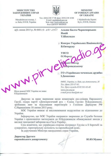 В то же время, грузинские СМИ обнародовали документальное подтверждение тому фату, что в МИД просили СБУ запретить въезд Бурджанадзе.
