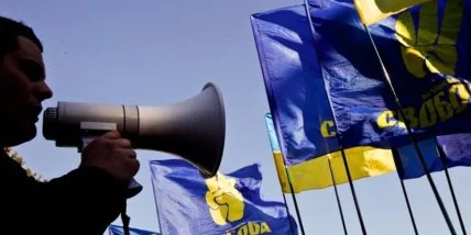 Около полусотни представителей ВО "Свобода" собрались на столичном Майдане Незалежности.