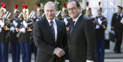 Президенты России и Франции Владимир Путин и Франсуа Олланд проводят встречу в Елисейском дворце, передает "канал 112 Украина".