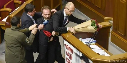 Как сообщалось, 11 декабря утром народный депутат (фракция "Блок Петра Порошенко") Олег Барна принес выступавшему в то время премьер-министру А.Яценюку на трибуну букет роз, после чего приподнял премьера на руки и попытался оттащить его от трибуны. После этого в зале возникла потасовка между депутатами фракций "Блок Петра Порошенко" и "Народный фронт".