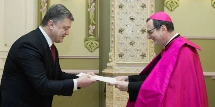 В ходе разговора с новым Послом Ватикана в Украине архиепископом Клаудио Гуджеротти Глава государства выразил искреннюю благодарность за активное содействие Святого Престола в консолидации усилий международного сообщества, направленных на восстановление мира и стабильности в Украине. Он также поблагодарил за гуманитарную помощь, которая оказывалась в течение 2014-2015 годов по линии "Каритас" для внутренне перемещенных лиц и пострадавших переселенцев.